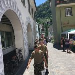 Der diesjährige Bündner Zweitagemarsch begann traditionell auf dem HV-Platz der Kaserne Chur, wie stets mit dem Abfeuern der Start-Kanone. Ansonsten erwartete uns viel Neues. So wurde erstmalig wahlweise eine alternative Strecke über 30 km angeboten und der erste Teil des Marsches führte durch die historische Altstadt von Chur, über den Markt und unter alten Lauben hindurch hinauf in die Rebberge.