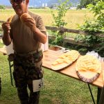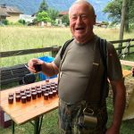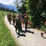 Im Talboden angekommen, erwartete uns beim Schiess-Stand Hampfrosa der Ehrentrunk und Platten mit Bergkäse. Für den Trunk hat jeder Marschierer seinen Marschbecher, inklusive Rucksackhalterung bekommen. Während sich die einen labten, hatten die Schützen die Gelegenheit, das 300 m Feldschiessen zu absolvieren. Dem Besten Schützen aus den Reihen der Marschierer winkte die Steinbock-Trophäe, die hierfür gestiftet wurde!