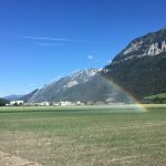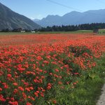 Der Sonntag führte uns hinunter zum Gelände der bekannten EMS-Chemie. Auf dem Weg bewunderten wir die blühenden Wiesen. Bei der Umrundung des Golfplatzes bestaunten sich die gepflegten Golfer und die Marschierer gegenseitig wohl in der selben Weise…